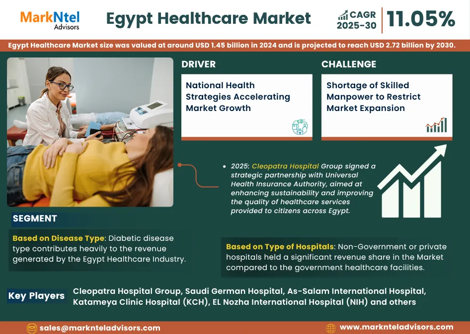 MarkNtel Advisors, a leading market research and consulting firm, has announced the release of its latest study titled Egypt Healthcare Market Research Report: Forecast (2025–2030). This report provides a detailed assessment of the Egypt Healthcare Market, covering its evolving dynamics, emerging trends, key growth drivers, major challenges, and competitive landscape.