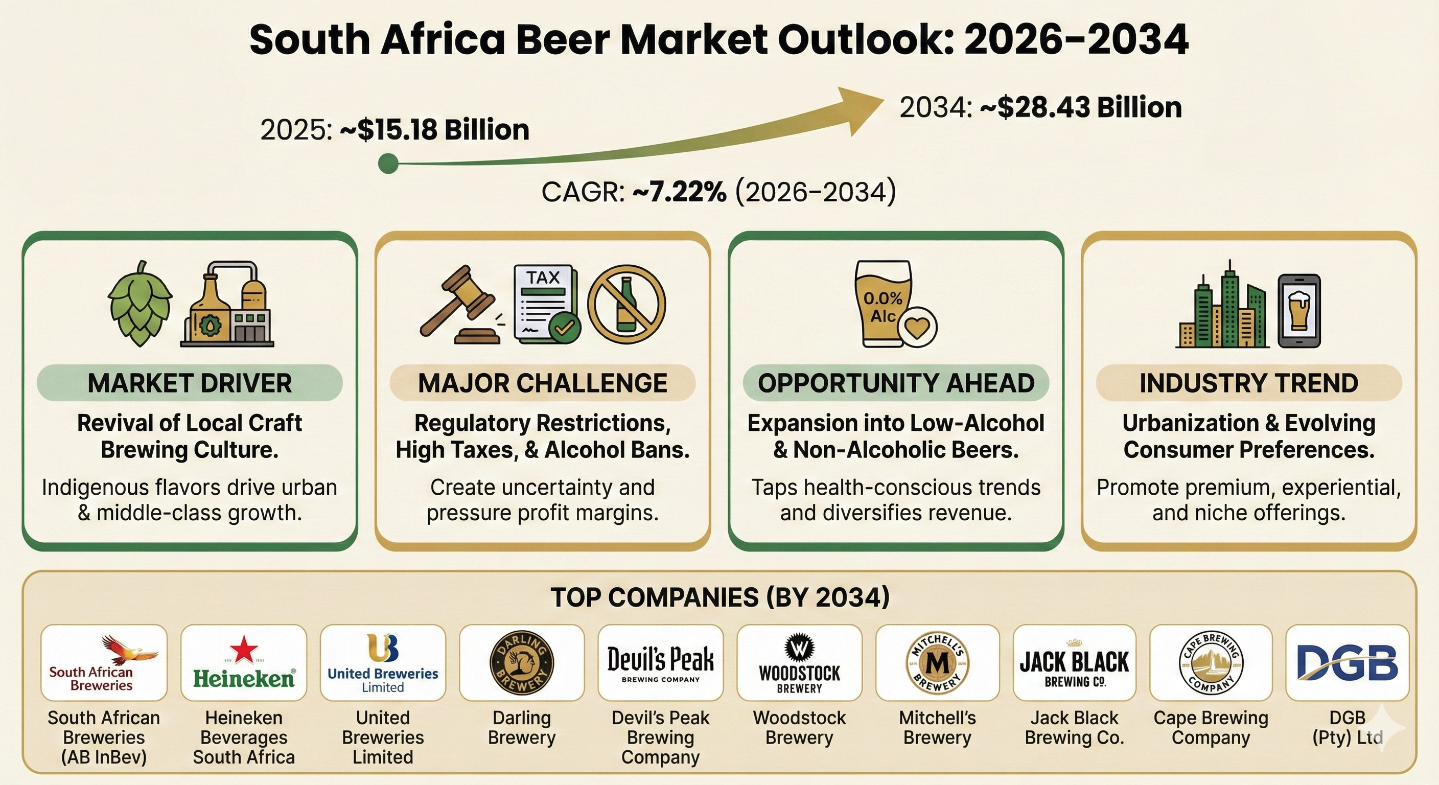 - According to the latest report by The Report Cube, study South Africa Beer Market is expected to grow at a CAGR of around 7.22% during 2026 - 2034.