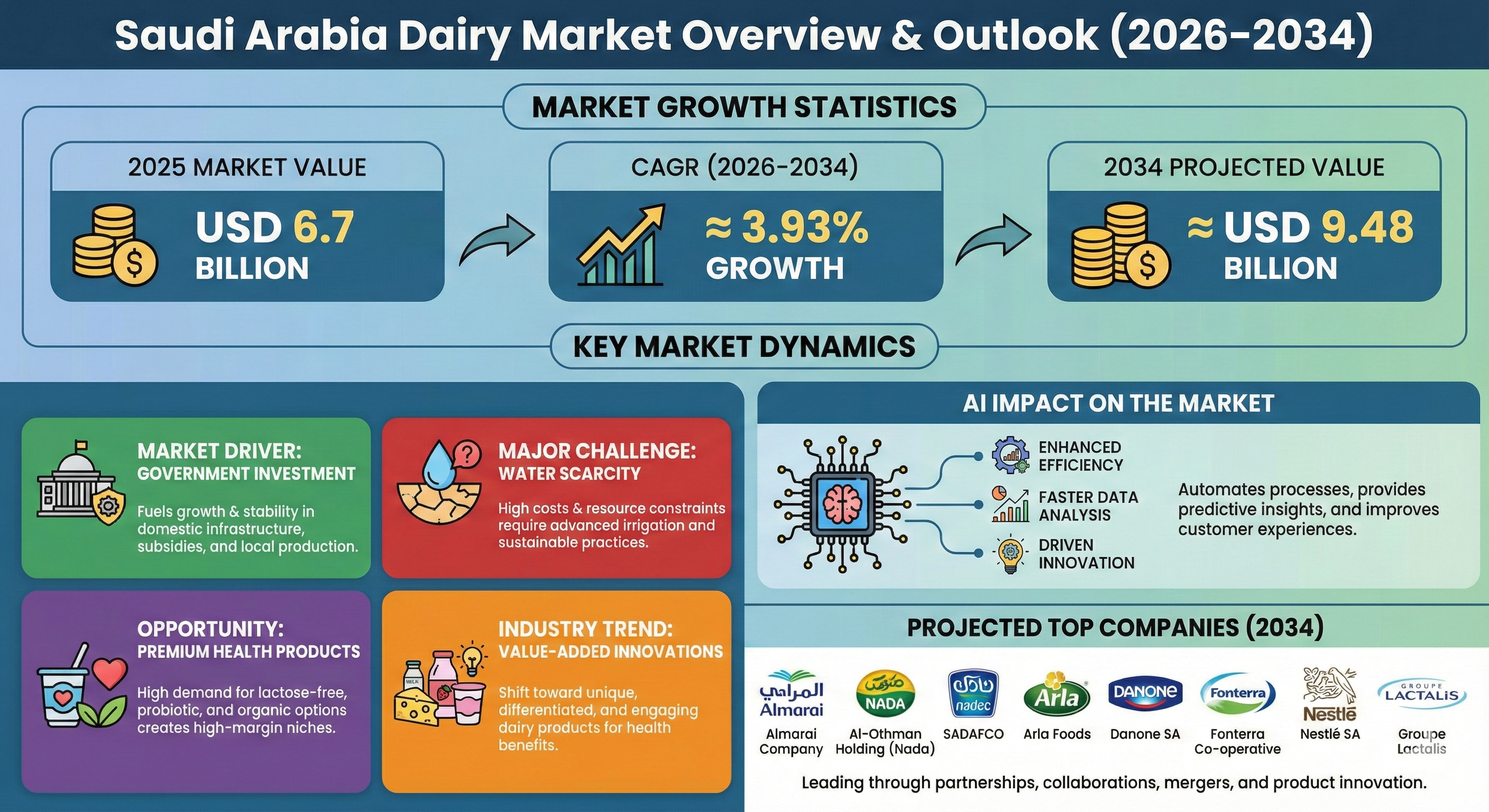 Saudi Arabia Dairy Market Insights: Key Drivers, Challenges, and Future Growth Prospects 2034|The Report Cube
