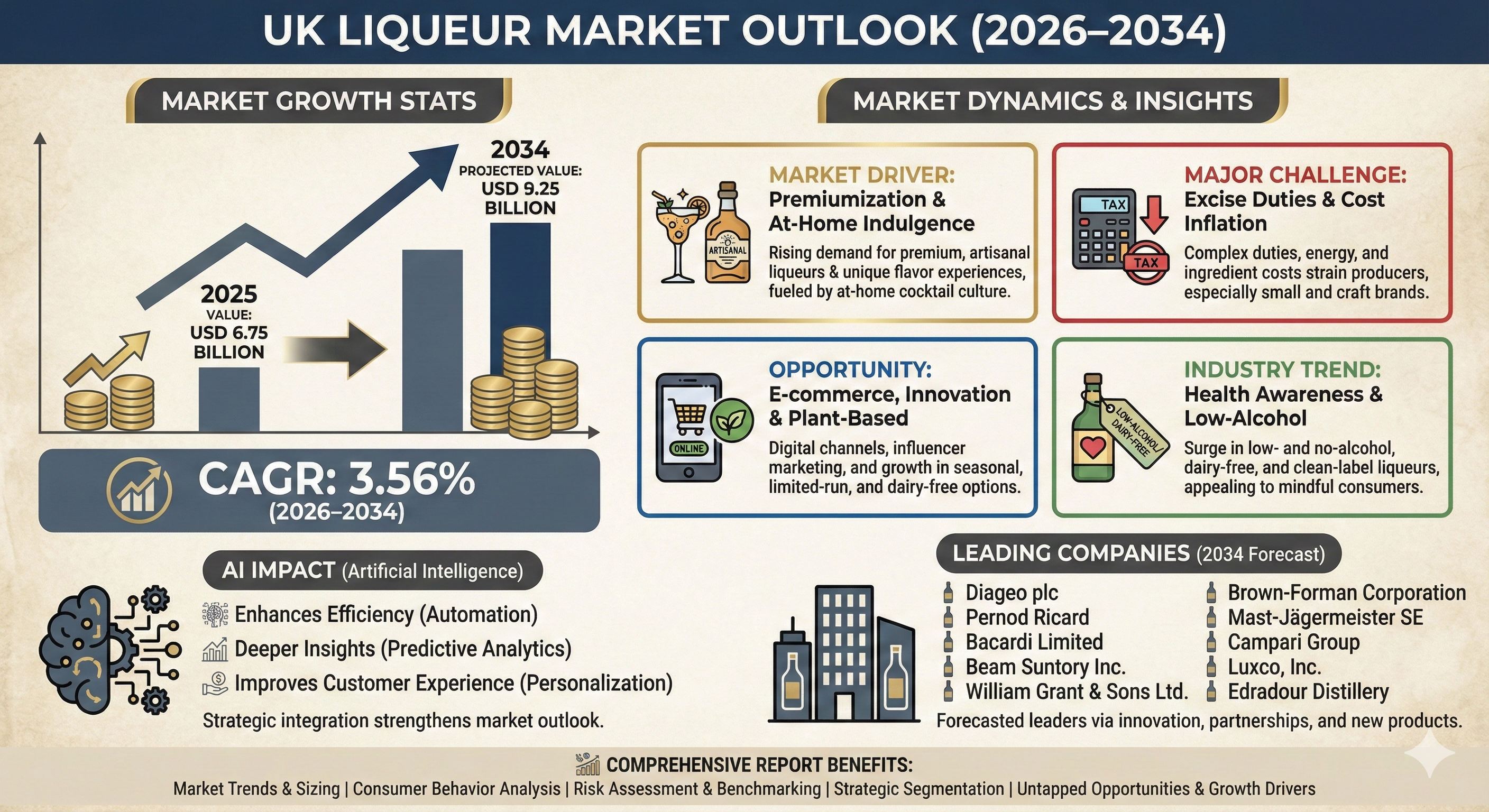 - According to the latest report by The Report Cube, study UK Liqueur Market is expected to grow at a CAGR of around 3.56% during 2026 - 2034.