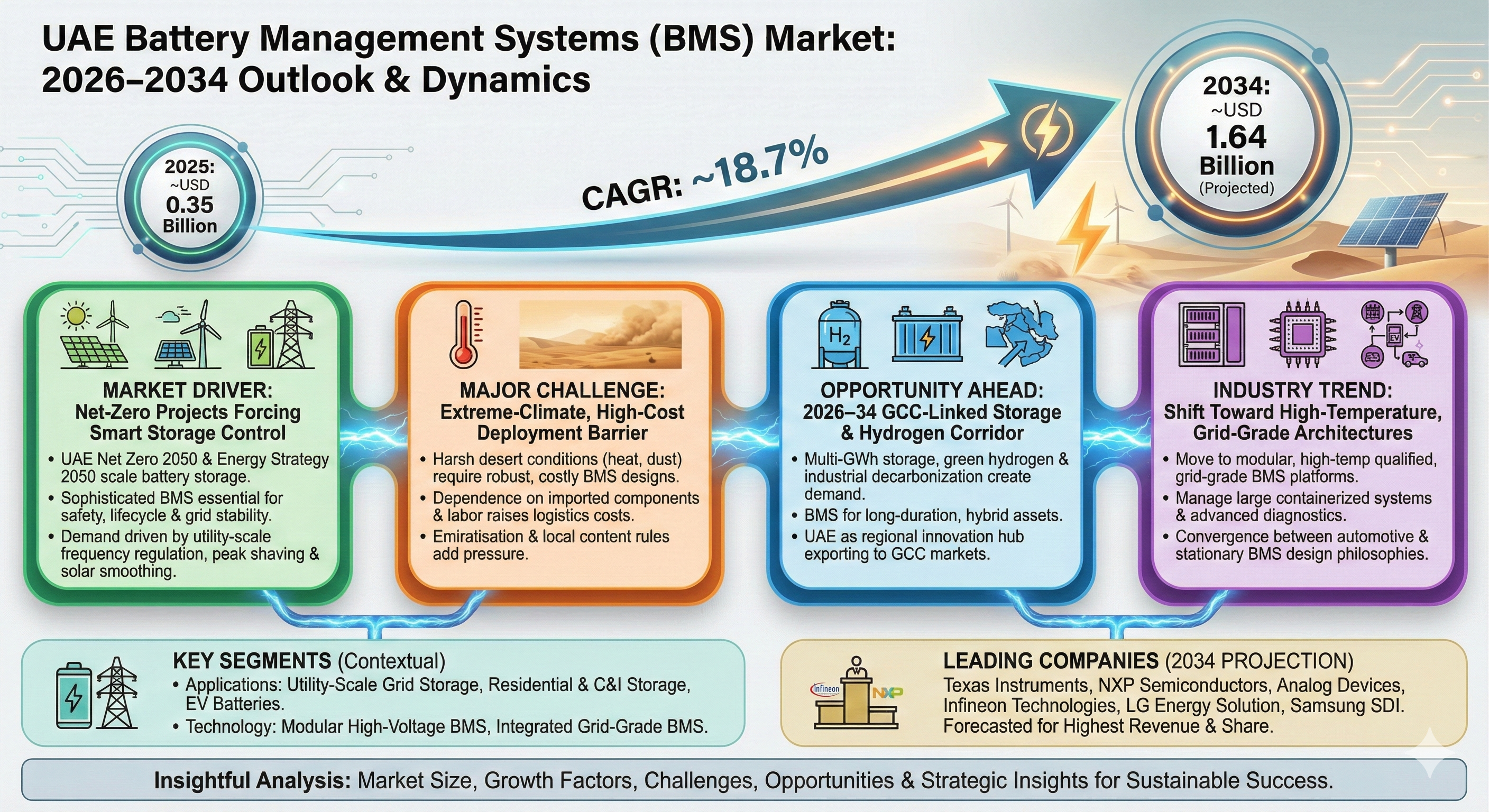 - UAE net-zero agenda drives utility-scale battery storage, requiring advanced BMS for grid stability.
