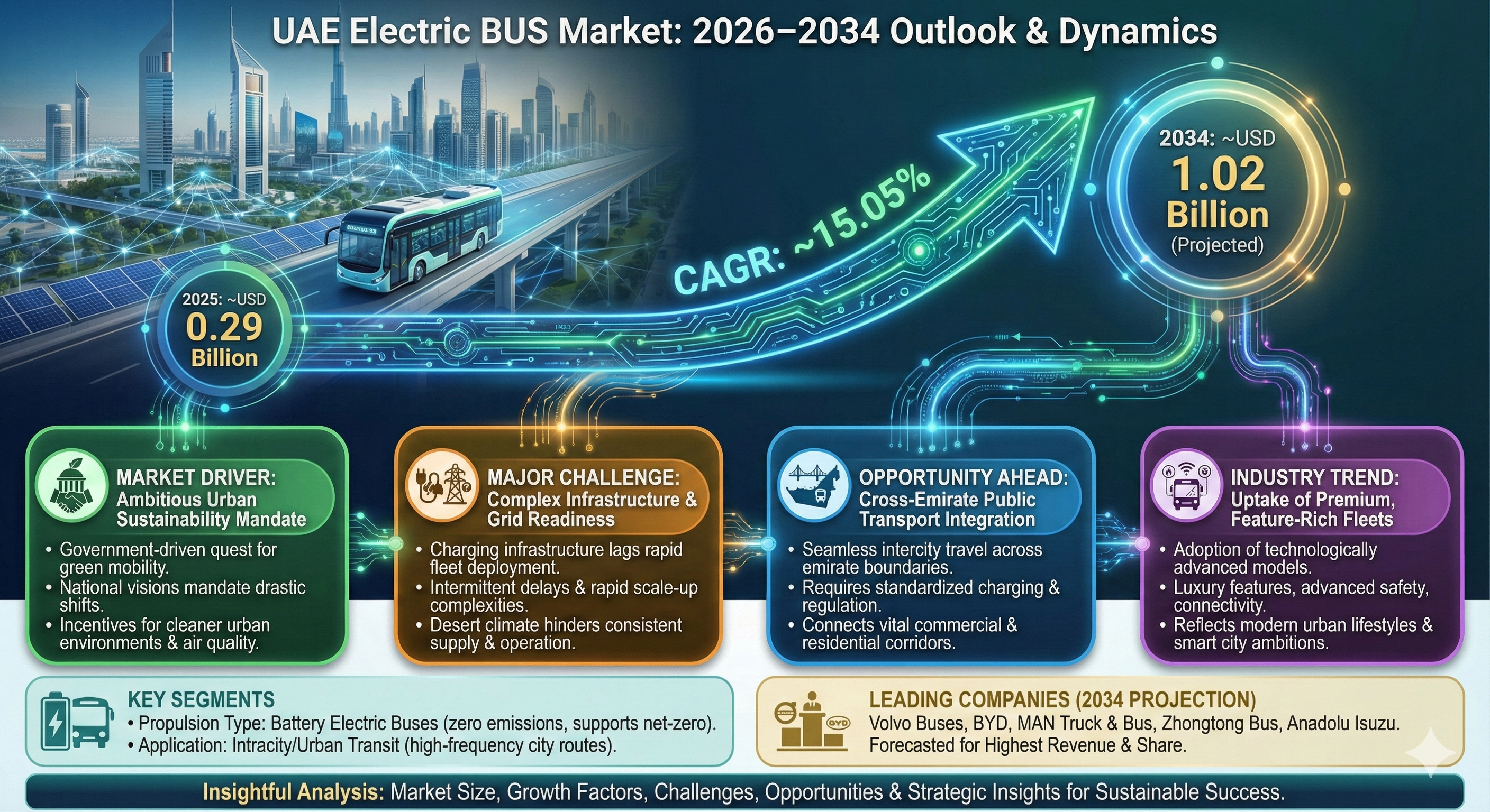 - According to the latest report by The Report Cube, study UAE Electric BUS Market is expected to grow at a CAGR of around 15.05% during 2026 - 2034.