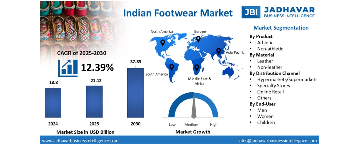 Jadhavar Business Intelligence is a Business Consultancy Firm that has published a detailed analysis of the “Indian Footwear Market”. The report includes key business insights, demand analysis, pricing analysis, and competitive landscape. The analysis in the report provides an in-depth aspect at the current status of the Indian Footwear Market.