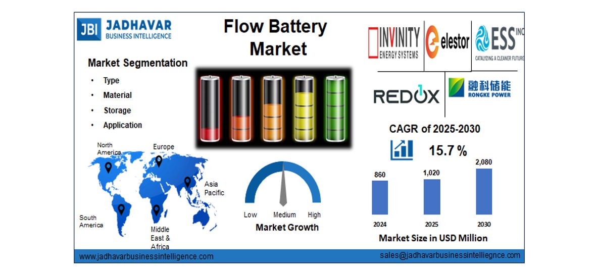 Jadhavar Business Intelligence is a Business Consultancy Firm that has published a detailed analysis of the “Flow Battery Market”. The report includes key business insights, demand analysis, pricing analysis, and competitive landscape. The analysis in the report provides an in-depth aspect at the current status of the Flow Battery Market.