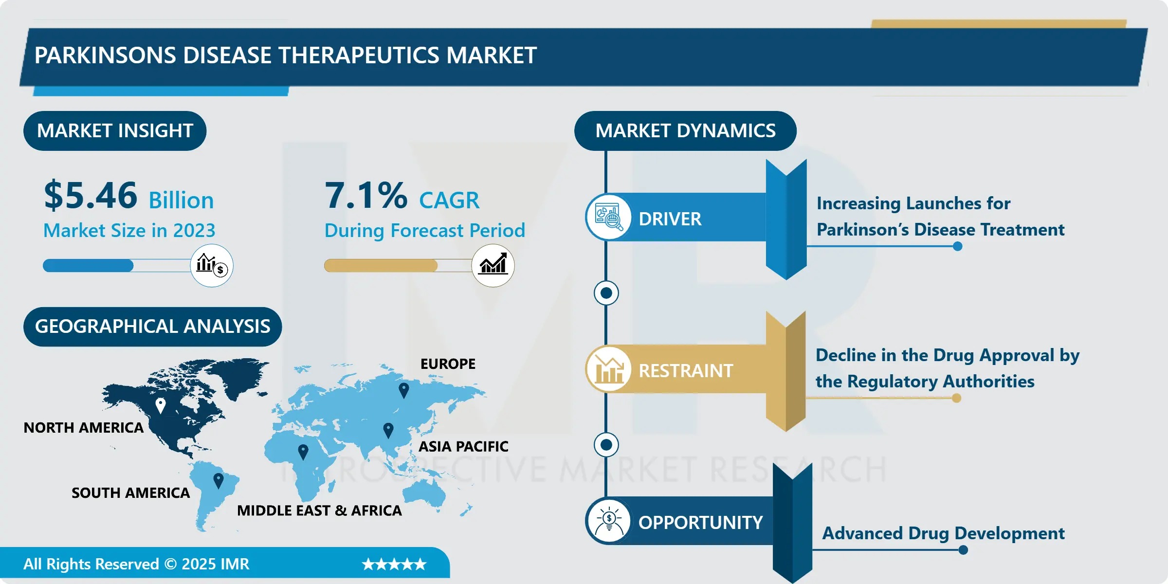 The Global Parkinson’s disease therapeutics market is accelerating into a new era of scientific possibility and patient-centered innovation, with total valuation projected to climb from USD 5.46 Billion in 2023 to USD 10.12 Billion by 2032-a compound annual growth rate (CAGR) of 7.1% over the forecast period. This sustained expansion is driven by the rapidly aging global population, rising disease prevalence, and a paradigm shift from symptomatic management toward disease-modifying interventions that target the underlying neurodegenerative cascade. With over 8.5 million people currently living with Parkinson’s worldwide-and incidence expected to double by 2040-pharmaceutical and biotech innovators are intensifying investments in next-generation modalities, including gene therapy, cell replacement strategies, and precision neurotherapeutics.