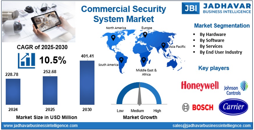 Jadhavar Business Intelligence is a Business Consultancy Firm that has published a detailed analysis of the “Commercial Security System Market”. The report includes key business insights, demand analysis, pricing analysis, and competitive landscape. The analysis in the report provides an in-depth aspect at the current status of the Commercial Security System Market.