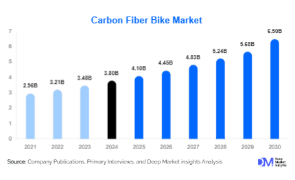 According to Deep Market Insights, the global Carbon Fiber Bike Market size is projected to grow from USD 4.1 Billion in 2025 to reach USD 6.5 Billion by 2030, expanding at a CAGR of 8.5% during the forecast period (2025–2030).