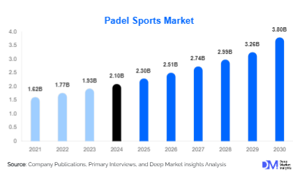According to Deep Market Insights, the global Padel Sports Market size is projected to grow from USD 2.3 Billion in 2025 to reach USD 3.8 Billion by 2030, expanding at a CAGR of 9.1% during the forecast period (2025–2030).